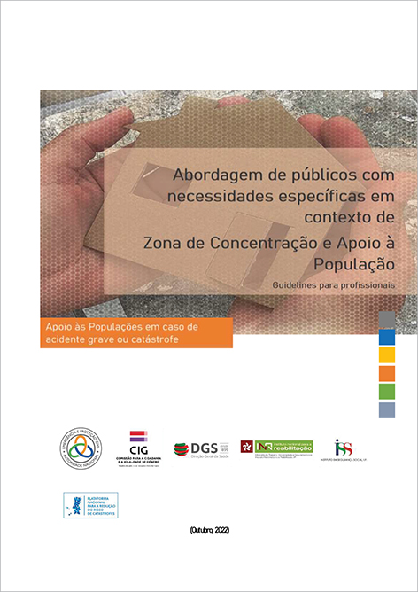 Considerando que uma Zona de Concentração e Apoio à População pode receber, antes, durante e após um acidente grave ou catástrofe, públicos com necessidades específicas que requerem uma atenção e cuidados particulares, a ANEPC concebeu um documento para profissionais, com indicações genéricas sobre conceitos e abordagens mais ajustadas às características e necessidades destas pessoas.